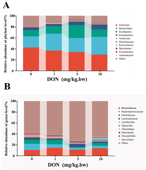 2.4. Effect of DON Treatment on Diversity of Fecal Microbiota in the Laying Hens