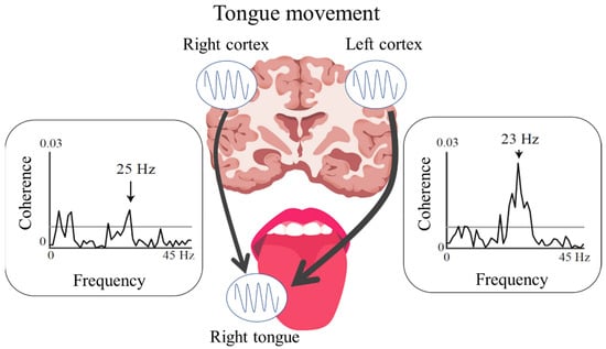 - Maezawa, H.; Mima, T.; Yazawa, S.; Matsuhashi, M.; Shiraishi, H.; Hirai, Y.; Funahashi, M. Contralateral dominance of corticomuscular coherence for both sides of the tongue during human tongue protrusion: An MEG study. Neuroimage 2014, 101, 245–255. [Google Scholar] [CrossRef]