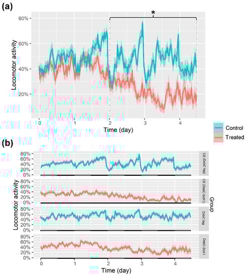 47], an open platform recording device. Ethoscopic experiments were performed with five biological replicates per treatment and repeated four times, with similar results. Twenty biological replicates per treatment and control group were used for this assay.