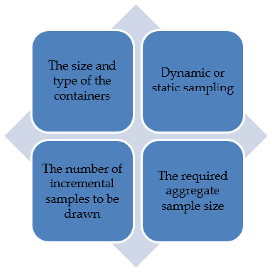 Many of the reviewed sampling procedures highlight that the key component of representative sampling is withdrawing sufficient quantities of many incremental samples from the lot at multiple locations [18,20,23,30], noting that this component is critical to reduce uncertainties and produce the most representative sample possible [44]. Moreover, procedures emphasize that increasing the sample size significantly reduces heterogeneous variation within a sample [15,23].