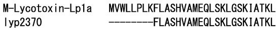 Comparison of the sequences between M-Lycotoxin-Lp1a and lyp2370.