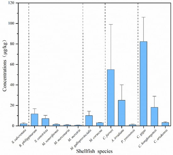 2.2. Comparison of DA Concentrations in Different Shellfish Species