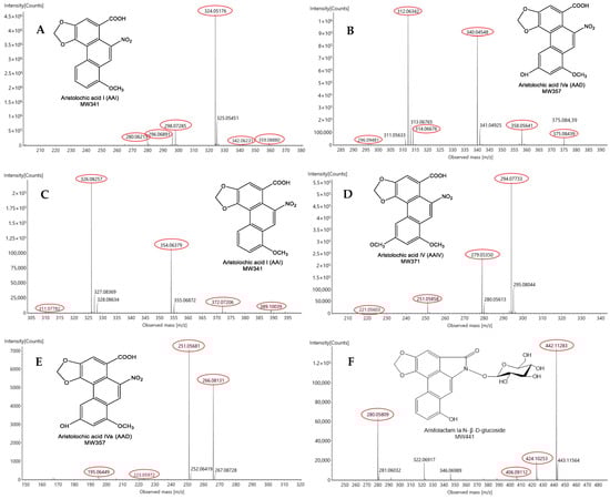 - Guo, N.; Zhao, Y.; Sun, Y.; Wang, A.Q.; Xu, L.C.; Liang, A.H. Qualitative and Quantitative Analysis of Aristolochic Acids in Aristolochia cinnabarina Dried Root Tubers by UPLC-QTOF-MS/MS. Chin. J. Exp. Tradit. Med. Formulae 2021, 27, 162–170. [Google Scholar] [CrossRef]