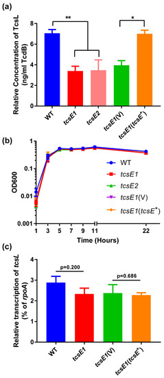 2.4. The TcsE Holin-like Protein Is Specific for TcsL Release Alone