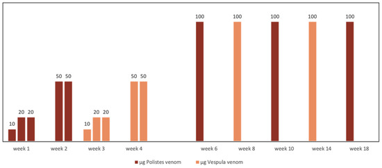 Scheme of alternate full dose administration of Vespula spp. and Polistes dominula venom used for doubly sensitized patients.