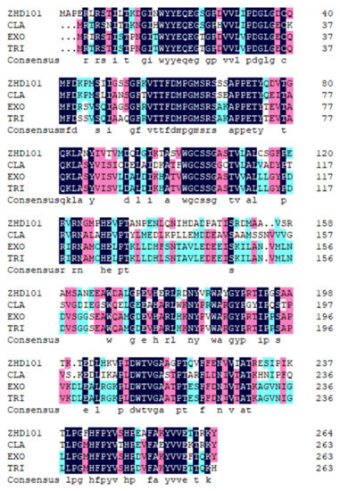 Amino acid sequence alignment of ZEN-degrading enzymes.