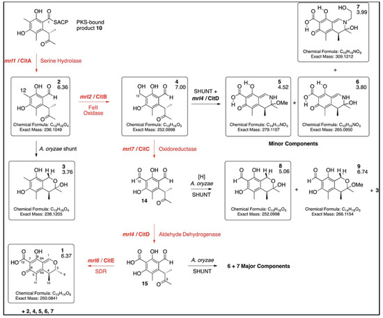- He, Y.; Cox, R.J. The molecular steps of citrinin biosynthesis in fungi. Chem. Sci. 2016, 7, 2119–2127. [Google Scholar] [CrossRef] [PubMed]