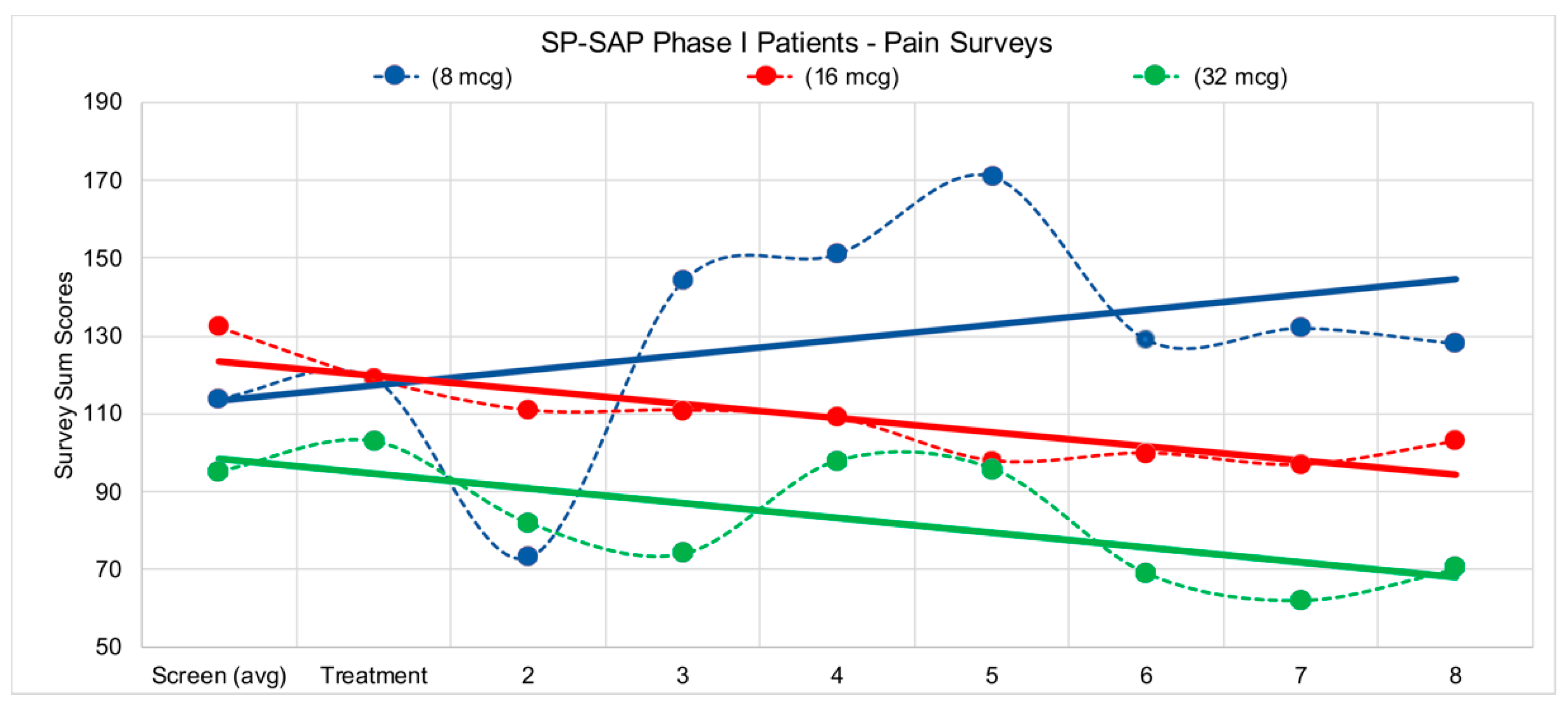 - Noe, C. SP-SAP Human Clinical Trial for Cancer Pain–An Anesthesiologist’s Point of View. Target. Trends 2015, 16, 1–8. [Google Scholar]