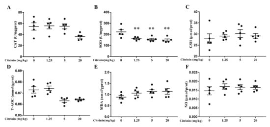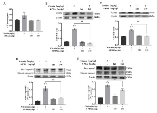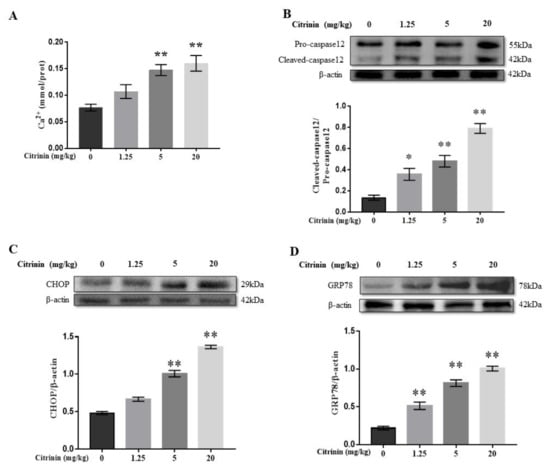 APA StyleWu, D., Yang, C., Yang, M., Wu, Y., Mao, Y., Zhou, X., Wang, J., Yuan, Z., & Wu, J. (2022). Citrinin-Induced Hepatotoxicity in Mice Is Regulated by the Ca2+/Endoplasmic Reticulum Stress Signaling Pathway. Toxins, 14(4), 259. https://doi.org/10.3390/toxins14040259