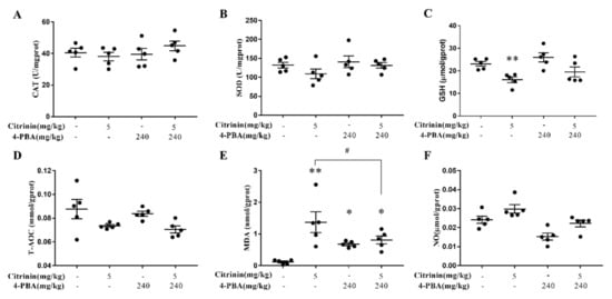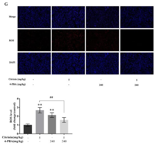 2.7. The Effects of 4-PBA on CTN-Induced Oxidative Stress in Liver