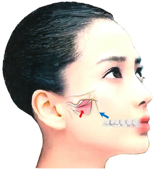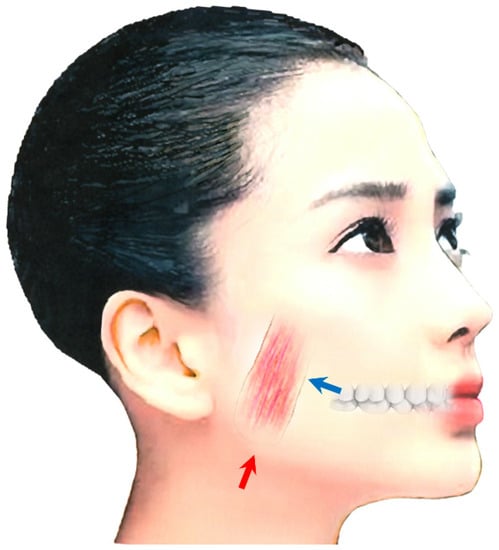 - Lee, H.J.; Kim, S.J.; Lee, K.J.; Yu, H.S.; Baik, H.S. Repeated injections of botulinum toxin into the masseter muscle induce bony changes in human adults: A longitudinal study. Korean J. Orthod. 2017, 47, 222–228. [Google Scholar] [CrossRef]