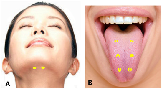 - Berkovitz, B.K.B. Tongue. In Gray’s Anatomy, 41st ed.; Standring, S., Ed.; Elsevier: Amsterdam, The Netherlands, 2016; pp. 511–517. [Google Scholar]