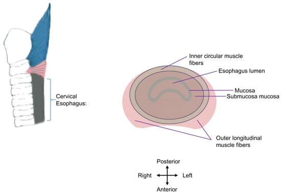 - Goyal, R.K.; Martin, S.B.; Shapiro, J.; Spechler, S.J. The role of cricopharyngeus muscle in pharyngoesophageal disorders. Dysphagia 1993, 8, 252–258. [Google Scholar] [CrossRef]
