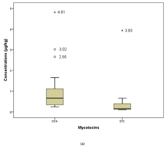 - Viegas, C.; Nurme, J.; Pieckova, E.; Viegas, S. Sterigmatocystin in foodstuffs and feed: Aspects to consider. Mycology 2020, 11, 91–104. [Google Scholar] [CrossRef] [Green Version]