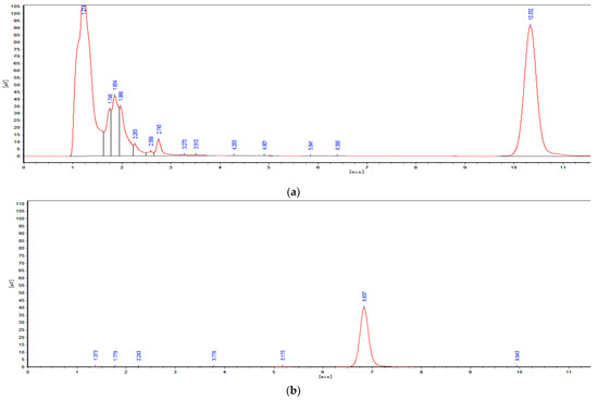 After incubation, cells of microbes were removed by centrifugation at 12,000 rpm for 4 min. The supernatants were filtered through filters with a 0.22 µm pore size (Millipore, Temecula, CA, USA) and analyzed by using high-performance liquid chromatography (HPLC). The HPLC was performed on an instrument (RF-20A, SHIMADZU Corporation, Kyoto, Japan) that contained a fluorescence detector set at 333 nm excitation and 477 nm emission wavelengths. The analysis was carried out with a reversed-phase Agilent Eclipse Plus C18 column (4.6 × 150 mm, 5 µm) at an injection volume of 20 µL, and the mobile phase was water/acetonitrile/acetic acid (99:99:2, v/v/v) at a flow rate of 1.0 mL/min. During the HPLC analysis of OTA with fluorescence detection, the peak of OTα production was also clearly observed.
