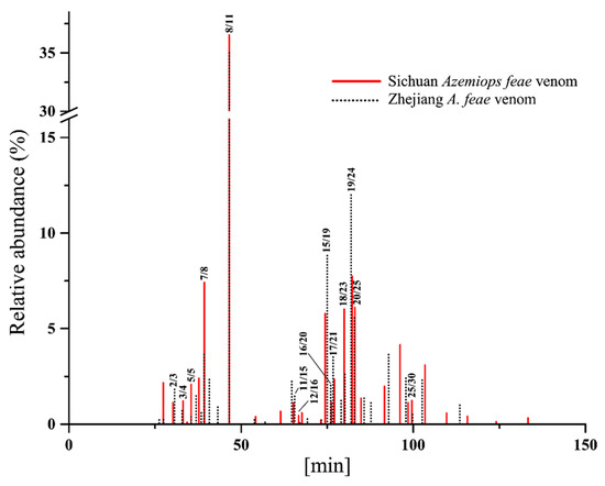 2.1. Proteomic Profiles of Venoms from Two A. feae Groups