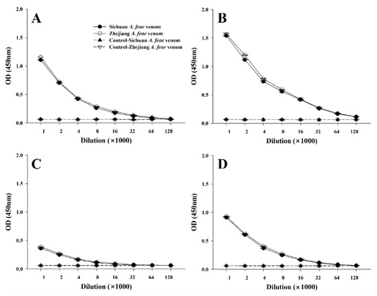 - Menezes, M.C.; Furtado, M.F.; Travaglia-Cardoso, S.R.; Camargo, A.C.M.; Serrano, S.M.T. Sex-based individual variation of snake venom proteome among eighteen Bothrops jararaca siblings. Toxicon 2006, 47, 304–312. [Google Scholar] [CrossRef] [PubMed]