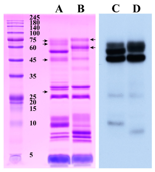- Gao, J.-F.; Wang, J.; He, Y.; Qu, Y.-F.; Lin, L.-H.; Ma, X.-M.; Ji, X. Proteomic and biochemical analyses of short-tailed pit viper (Gloydius brevicaudus) venom: Age-related variation and composition–activity correlation. J. Proteom. 2014, 105, 307–322. [Google Scholar]