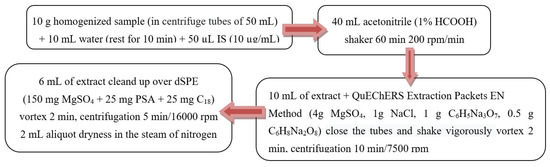 Atropine and scopolamine were extracted from ground corn puff samples using the QuEChERS method described in Figure 3.