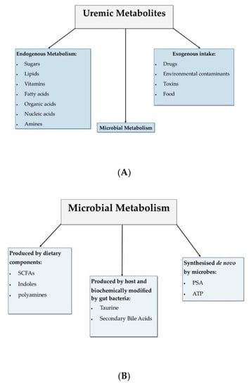 - Duranton, F.; Cohen, G.; De Smet, R.; Rodriguez, M.; Jankowski, J.; Vanholder, R.; Argiles, A.; European Uremic Toxin Work Group. Normal and pathologic concentrations of uremic toxins. J. Am. Soc. Nephrol. 2012, 23, 1258–1270. [Google Scholar] [CrossRef]