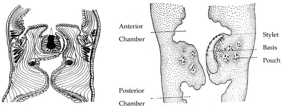 - Stricker, S.A.; Cloney, R.A. Stylet formation in nemerteans. Biol. Bull. 1982, 162, 387–403. [Google Scholar] [CrossRef]
