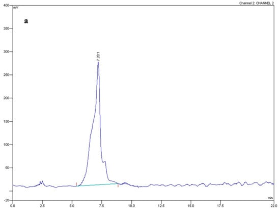 For FA extraction from fungal cultures, supernatants were collected and filtered through Whatman no. 4 filter paper (Whatman Ltd., Maidstone, UK), adjusted to pH 2.0 with HCl (37% v/v) and extracted with ethyl acetate (1:1 v/v). Ethyl acetate phases were separately collected, dried by rotary evaporation under reduced pressure and resuspended in methanol. FA content was quantified through high-performance liquid chromatography (HPLC-UV; Varian Analytical Instruments; Model 9010; Palo Alto, CA, USA) by using previously reported methods and experimental conditions [38,39] and expressed in µg of FA per mg of dry fungal biomass. To obtain an FA calibration curve, methanol-dissolved FA standard solution (Merck Life Science; Milano, MI, Italy) was injected at concentrations ranging from 0.02 to 2.0 mg mL−1. A linear relationship between peak areas and the investigated FA concentrations was obtained (Y = 0.001x + 0.0105; R2 value of 0.997). Method validation was performed by spiking MM blanks with known concentrations of FA. The average recovery rate was 96% and always exceeded 95%.