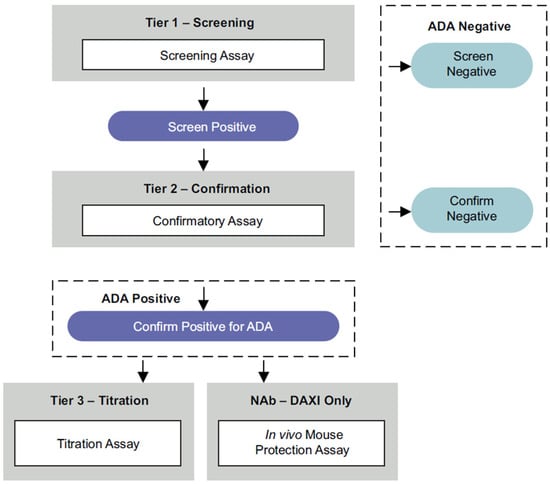 - US Food and Drug Administration. Immunogenicity Testing of Therapeutic Protein Products—Developing and Validating Assays for Anti-Drug Antibody Detection. Guidance for Industry. 2019. Available online: https://www.fda.gov/regulatory-information/search-fda-guidance-documents/immunogenicity-testing-therapeutic-protein-products-developing-and-validating-assays-anti-drug (accessed on 24 January 2020).
