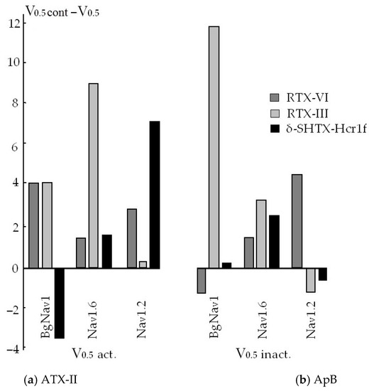 - Seibert, A.L.; Liu, J.; Hanck, D.A.; Blumenthal, K.M. Arg-14 loop of site 3 anemone toxins: effects of glycine replacement on toxin affinity. Biochemistry 2003, 42, 14515–14521. [Google Scholar] [CrossRef] [PubMed]