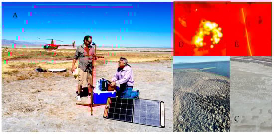 Access to sites on publicly accessible land was carried out using a Robinson R44 Raven II helicopter (Blade Helicopters, Ogden, UT) due to the isolation and inaccessibility of many of the sampling sites. Air and/or lakebed samples were taken at publicly accessible sites on the eastern (Promontory Point) down to the southern (Saltaire) areas of the Great Salt Lake (Figure 3). Sampling was performed on 1 day in each month (August, September and October) of 2022 when the lakebed was at its lowest point during the year and without snow cover. After collection, samples were transported to the laboratory on ice.