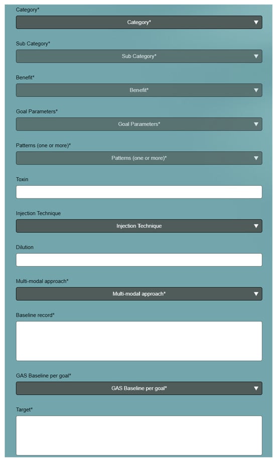The tool is provided as a web-based application that can be used on all tablets, smart phones, and laptops. It provides step-by-step guidance with the selection of commonly used spasticity treatment goals, associated patterns and muscles, and monitoring outcome measures to assess treatment success. Drop-down lists guide the user through the selection of goal category, sub-category, benefit, goal parameters, treatment patterns, and associated muscles to inject.