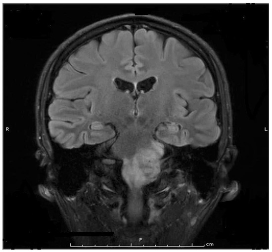 The authors have used BoNT for the treatment of disabling, deep neck and shoulder pain associated with extensive ponto-medullary astrocytoma (Figure 3) in a young patient who suffered from spasms of the neck and shoulder muscles. The patient had failed treatments with non-steroidal anti-inflammatory analgesics and tizanidine, and treatment with opioids had minimal analgesic effect. The following muscles were injected with onabotulinum toxinA: left and right splenius capitis (40 units each), left and right trapezius (40 units each), left and right levator scapulae (40 units each), and left and right sternocleidomastoid (20 units each). The total dose was 280 units. The patient reported significant pain relief following these injections. His initial pain score on the Visual Analogue Scale (VAS) was between 8 and 9. It dropped to 3 to 4 a week following injections. The analgesic effect of the injected toxin lasted between 2.5 and 3 months. Injections were repeated every three months for two years until the patient passed away from complications of cancer.