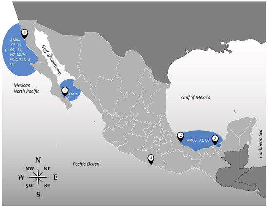 Sampling locations along Mexican coasts.