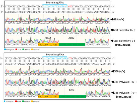 2.6. Mutagenesis of Pxpolycalin and PxABCC2 Mediated by CRISPR/Cas9