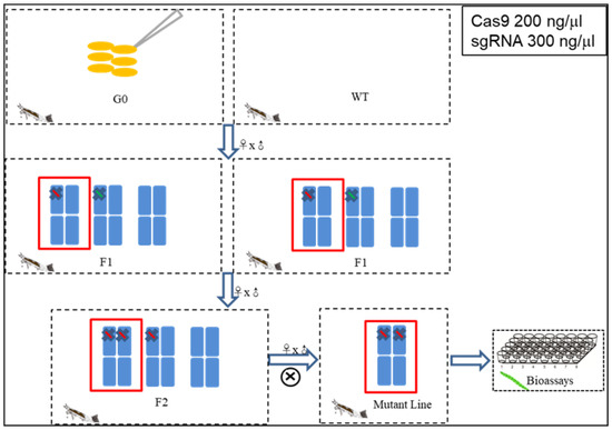 - Wang, J.; Yang, X.; He, H.; Chen, J.; Liu, Y.; Huang, W.; Ou, L.; Yang, Z.; Guan, X.; Zhang, L.; et al. Knockout of two Cry-binding aminopeptidase N isoforms does not change susceptibility of Aedes aegypti larvae to Bacillus thuringiensis subsp. israelensis Cry4Ba and Cry11Aa toxins. Insects 2021, 12, 223. [Google Scholar] [CrossRef] [PubMed]