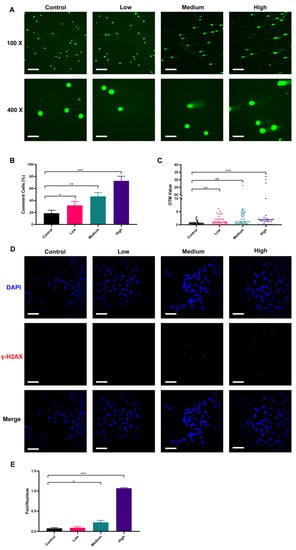 - Olive, P.; Banáth, J. The comet assay: A method to measure DNA damage in individual cells. Nat. Protoc. 2006, 1, 23–29. [Google Scholar] [CrossRef]