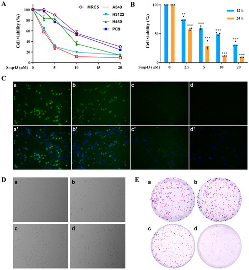 2.1. Smp43 Reduces Cell Viability in Human Lung Cancer