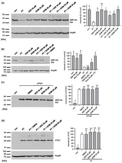 2.4. Domperidone Reduces the Amount of ADP-Ribosylated Gαi in PT-Treated Cells without Interfering with the Enzyme Activity In Vitro or the Cell Binding of PT to Cells