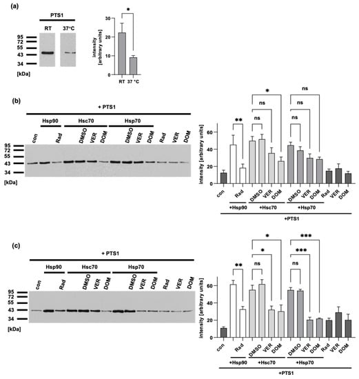 2.5. In the Presence of Domperidone, Less Free PTS1 Is Detectable in Cells