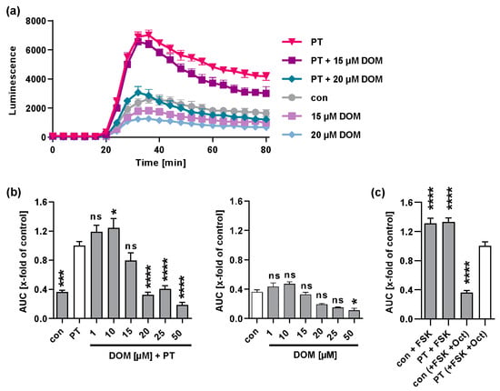 2.7. Domperidone Reduces the PT-Mediated Effects on cAMP Signaling