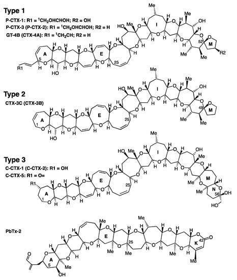 2.1. Structures of the Three Main Types of Ciguatoxins