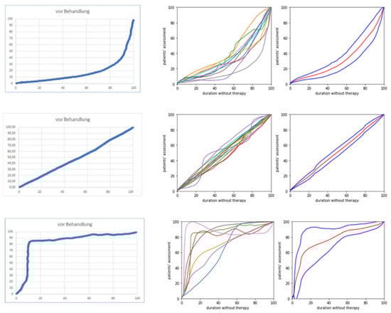 The improvement assessed by the patients as a percentage of the initial severity of their disease (IMPQ) was 69.4% (SD: 19). When patients had to use the right edge of the CoDA graph as a VAS scale (IMPD) to assess the actual severity of the disease (ASD) before drawing the CoDA graph (for details, see methods), the improvement (IMPD) was 69.6% (SD: 18.2), which was nearly identical to the IMPQ.