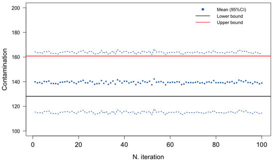 - Hornung, R.W.; Reed, L.D. Estimation of average concentration in the presence of nondetectable values. Appl. Occup. Environ. Hyg. 1990, 5, 46–51. [Google Scholar] [CrossRef]