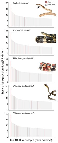 - Modahl, C.M.; Saviola, A.J.; Mackessy, S.P. Integration of Transcriptomic and Proteomic Approaches for Snake Venom Profiling. Expert. Rev. Proteom. 2021, 18, 827–834. [Google Scholar] [CrossRef]