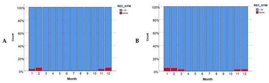 The presence of GYM-A per month (A) in Alfacs Bay and (B) in Fangar Bay.