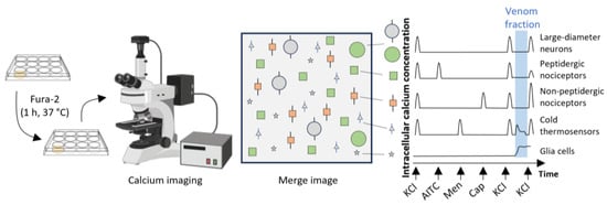 - Maatuf, Y.; Priel, A. High-Throughput Calcium Imaging Screen of Toxins’ Function in Dissociated Sensory Neurons. In Snake and Spider Toxins. Methods in Molecular Biology; Priel, A., Ed.; Humana: New York, NY, USA, 2020; Volume 2068, pp. 275–282. [Google Scholar] [CrossRef]