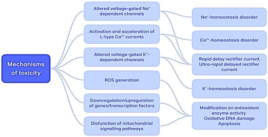 The mechanism by which aconitine exerts its toxic effects is multifactorial (Figure 3), its harmful effect having different degrees of severity: damage to myocardial cell Na+ channels, DNA damage, changes in energy metabolism and/or leading to cellular apoptosis [47,56,57].
