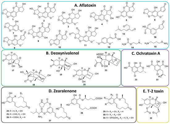 - Agriopoulou, S.; Stamatelopoulou, E.; Varzakas, T. Advances in Occurrence, Importance, and Mycotoxin Control Strategies: Prevention and Detoxification in Foods. Foods 2020, 9, 137. [Google Scholar] [CrossRef] [PubMed]