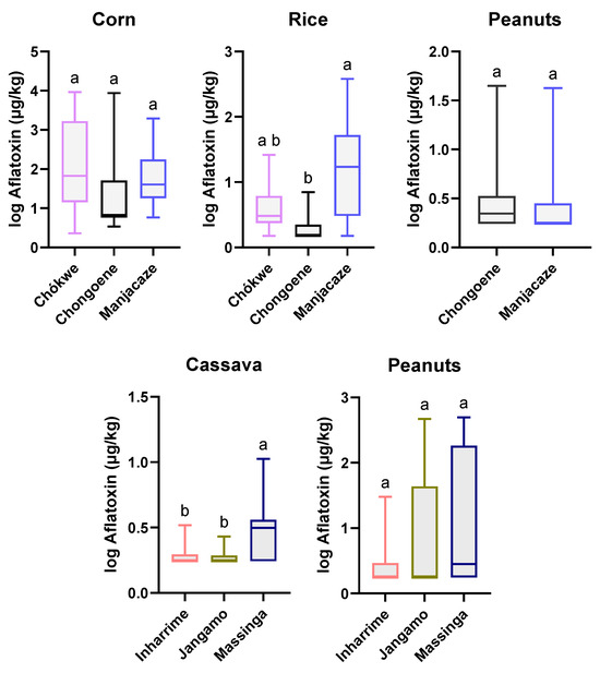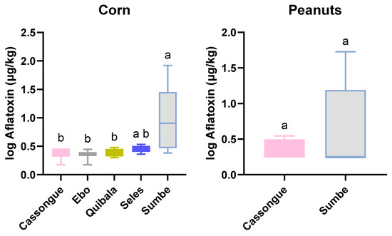 Matusse, C.; Lucamba, Z.; Bila, J.; Macuamule, C.; Sampaio, A.; Afonso, S.; Venâncio, A.; Rodrigues, P. Aflatoxin Contamination of Various Staple Foods from Angola and Mozambique. Toxins 2024, 16, 516. https://doi.org/10.3390/toxins16120516