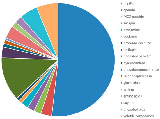 - Shi, P.; Xie, S.; Yang, J.; Zhang, Y.; Han, S.; Su, S.; Yao, H. Pharmacological Effects and Mechanisms of Bee Venom and Its Main Components: Recent Progress and Perspective. Front. Pharmacol. 2022, 13, 1001553. [Google Scholar] [CrossRef]