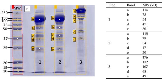- Laemmli, U.K. Cleavage of Structural Proteins during the Assembly of the Head of Bacteriophage T4. Nature 1970, 227, 680–685. [Google Scholar] [CrossRef] [PubMed]